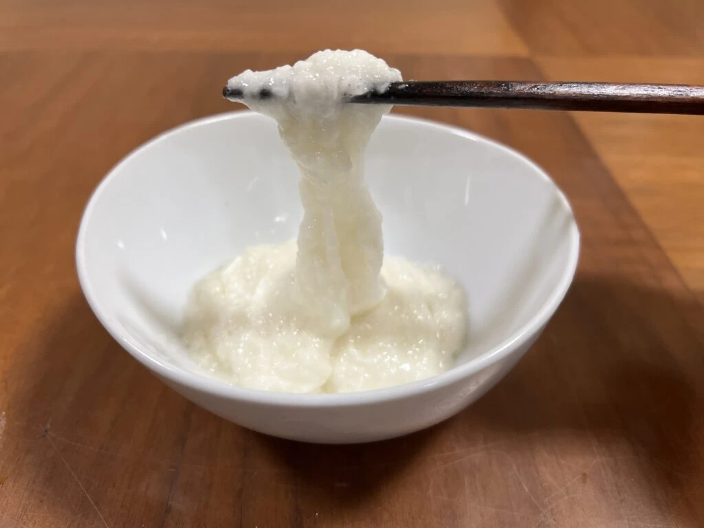 ※ 如果家裡買到的不是日本山藥,而是台灣山藥或紫山藥,也不是完全不能做成泥,只是更建議改成熟版。做法可以改為先蒸熟,再壓成泥,最後加入少量鹽巴、牛奶或高湯調整口感