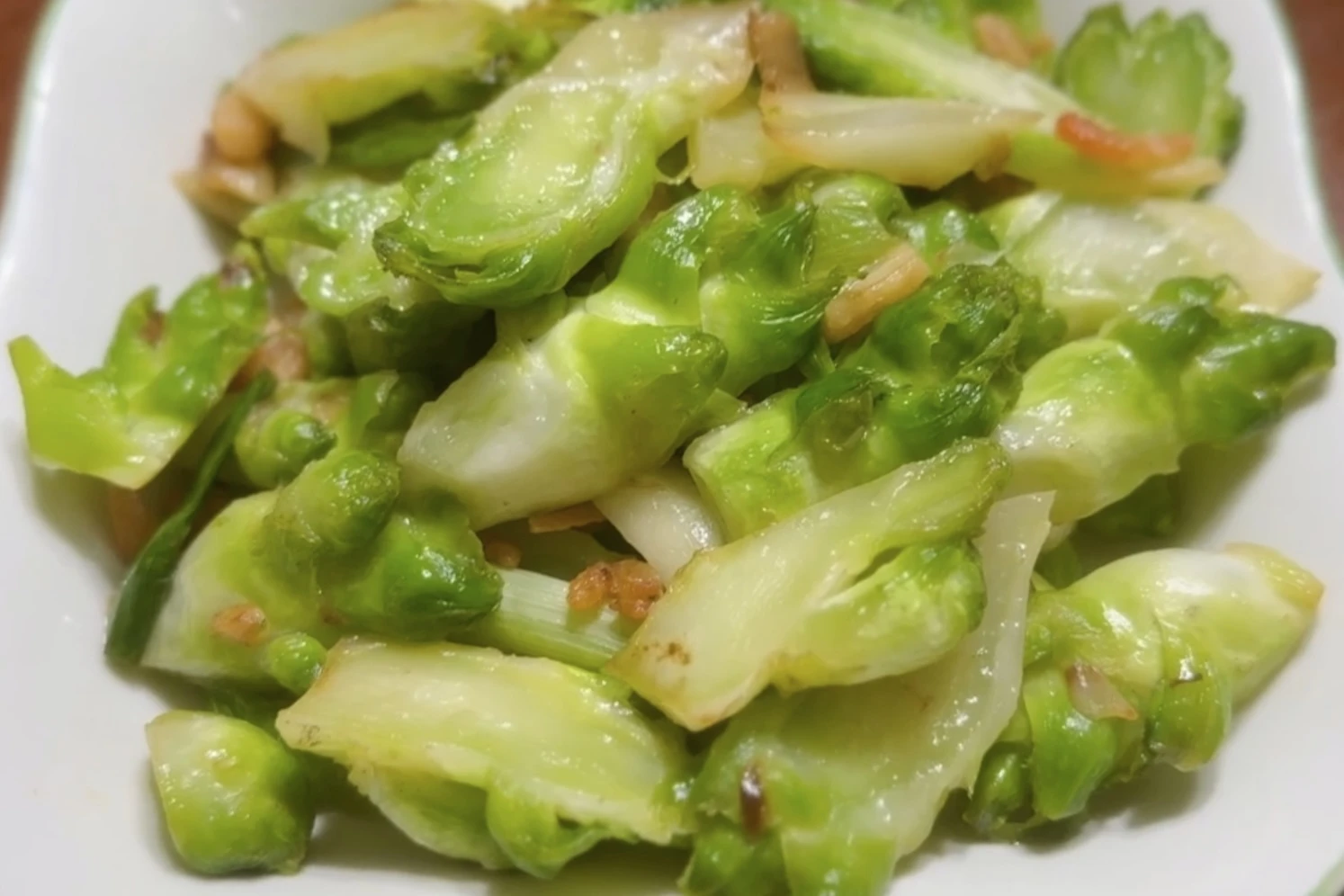 這是最能體現娃娃菜層次感的做法。用蒜頭或薑絲快炒,鍋氣起來後下菜,輕輕加一點鹽。關鍵是燜一下,讓高山的甜度完全釋放,菜心軟嫩中帶著清脆,甜得很明顯。