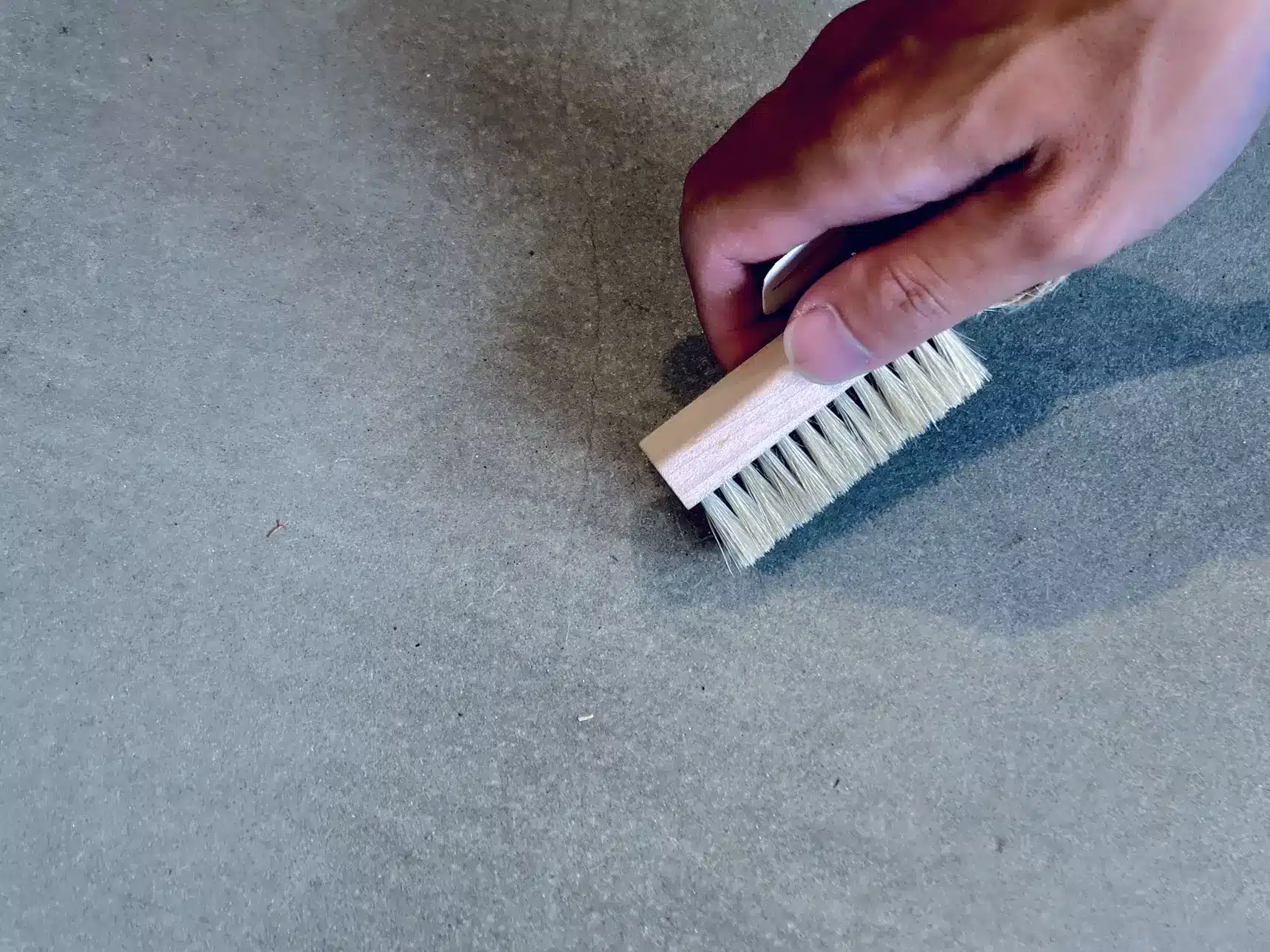 方塊能夠隨身攜帶的皮包刷,材質為較細的豬鬃毛,較一些進口的鬃毛刷柔軟,用於保養皮件與皮件製品,細緻不傷皮料