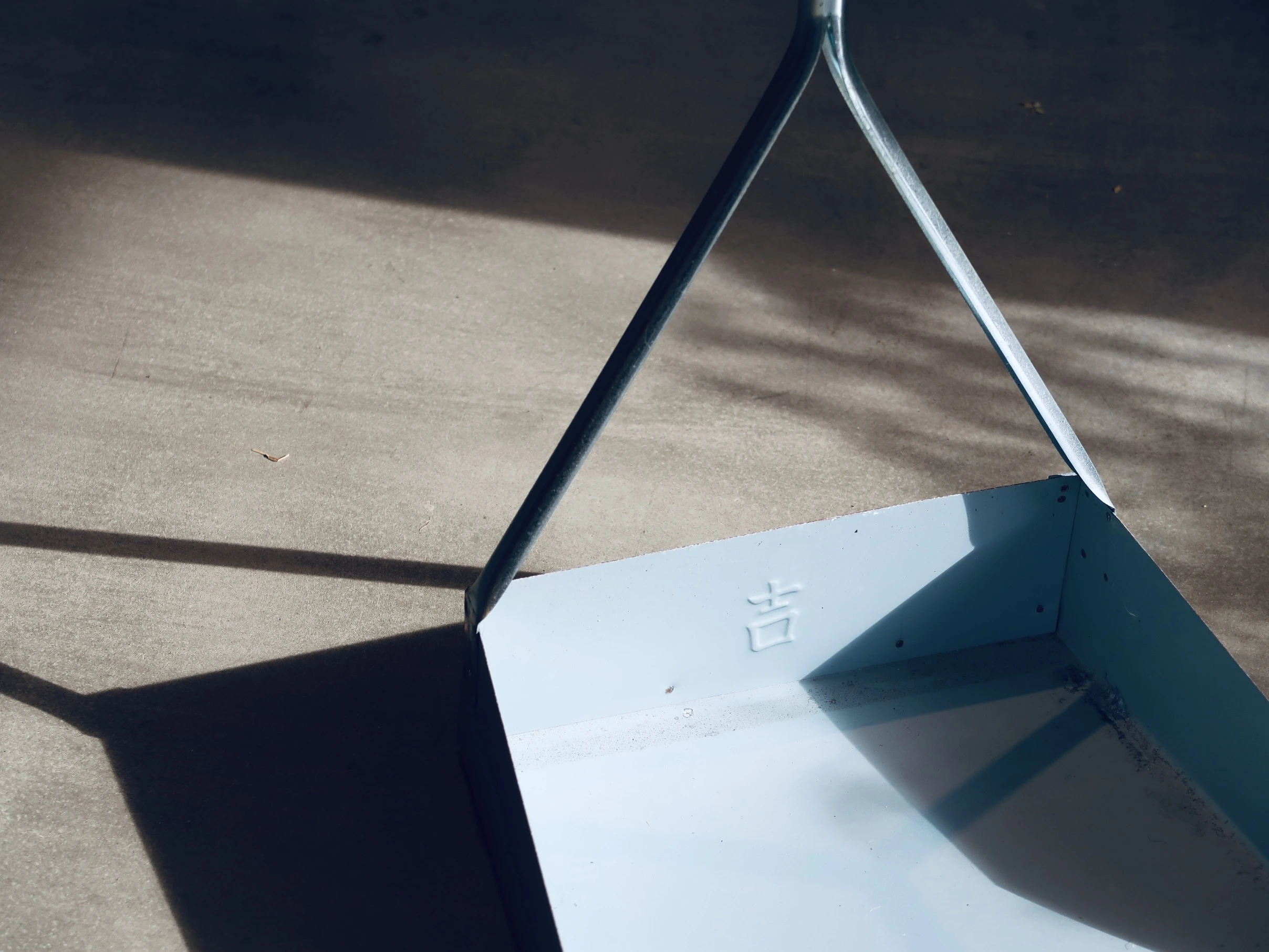 這款台灣製造的金屬畚箕,結構扎實且經久耐用。不同於易變形的塑膠製品,它以純粹的工具感呈現,內側特別壓印了一個「吉」字,讓清掃這件日常家事多了一份順遂的意思。它不只是清潔工具,也是一件能陪生活很久的老派器物。