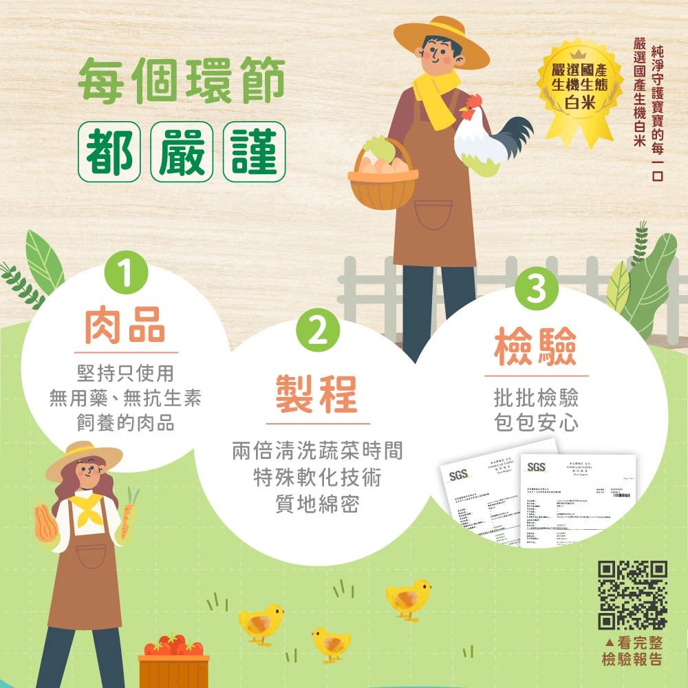 「安心」不是口號,而是每一批產品都要經過自主檢驗。對我們來說,這不是加分項,而是對副食品的基本責任。