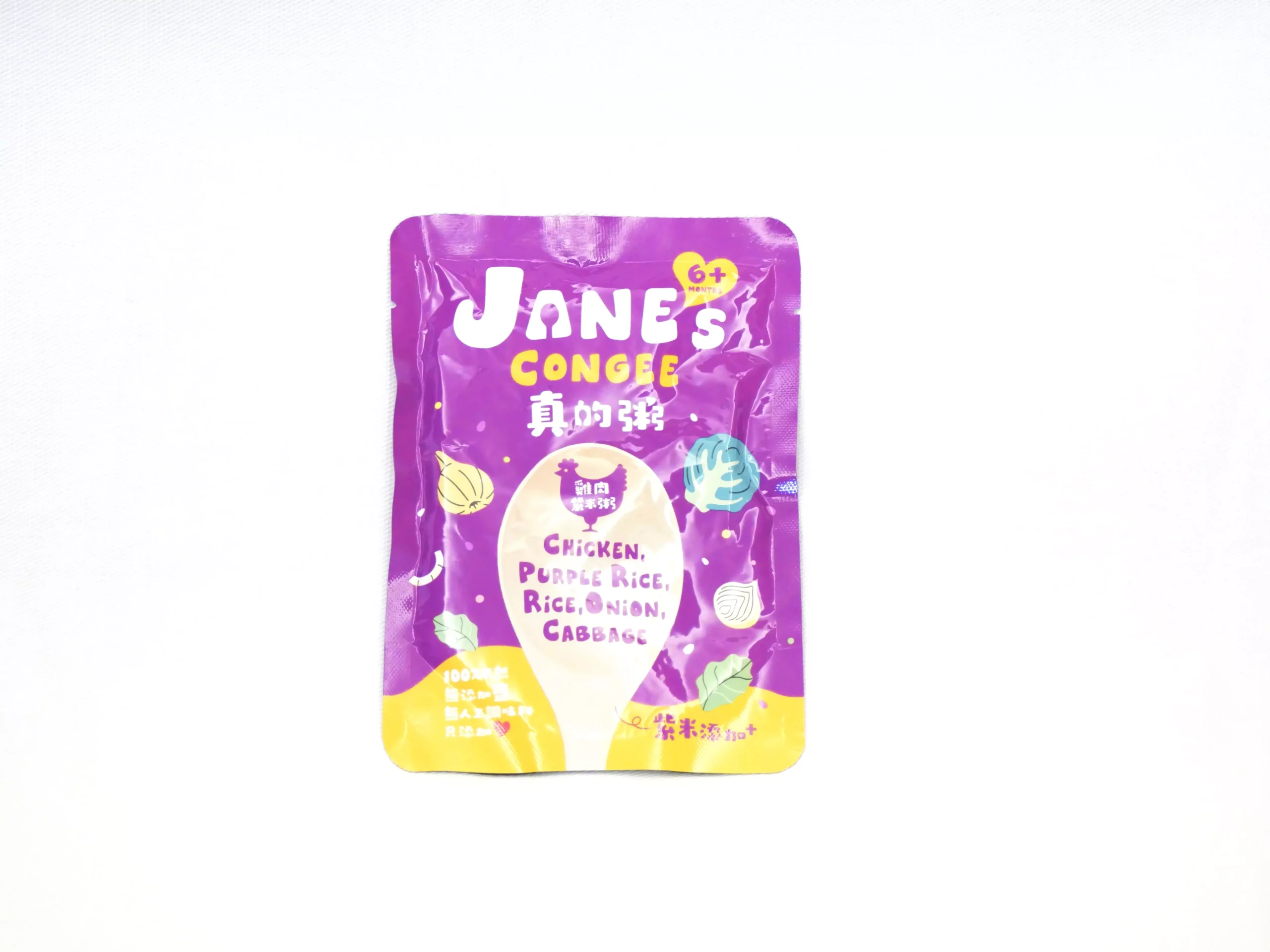 Jane’s Congee 雞肉紫米粥以雞胸肉、白米、紫米、洋蔥、高麗菜熬煮而成。這款口味不靠多餘調味支撐,而是利用食材本身的層次:雞肉提供優質蛋白質,紫米增添完整口感,而洋蔥與高麗菜則帶出自然的清甜順口。