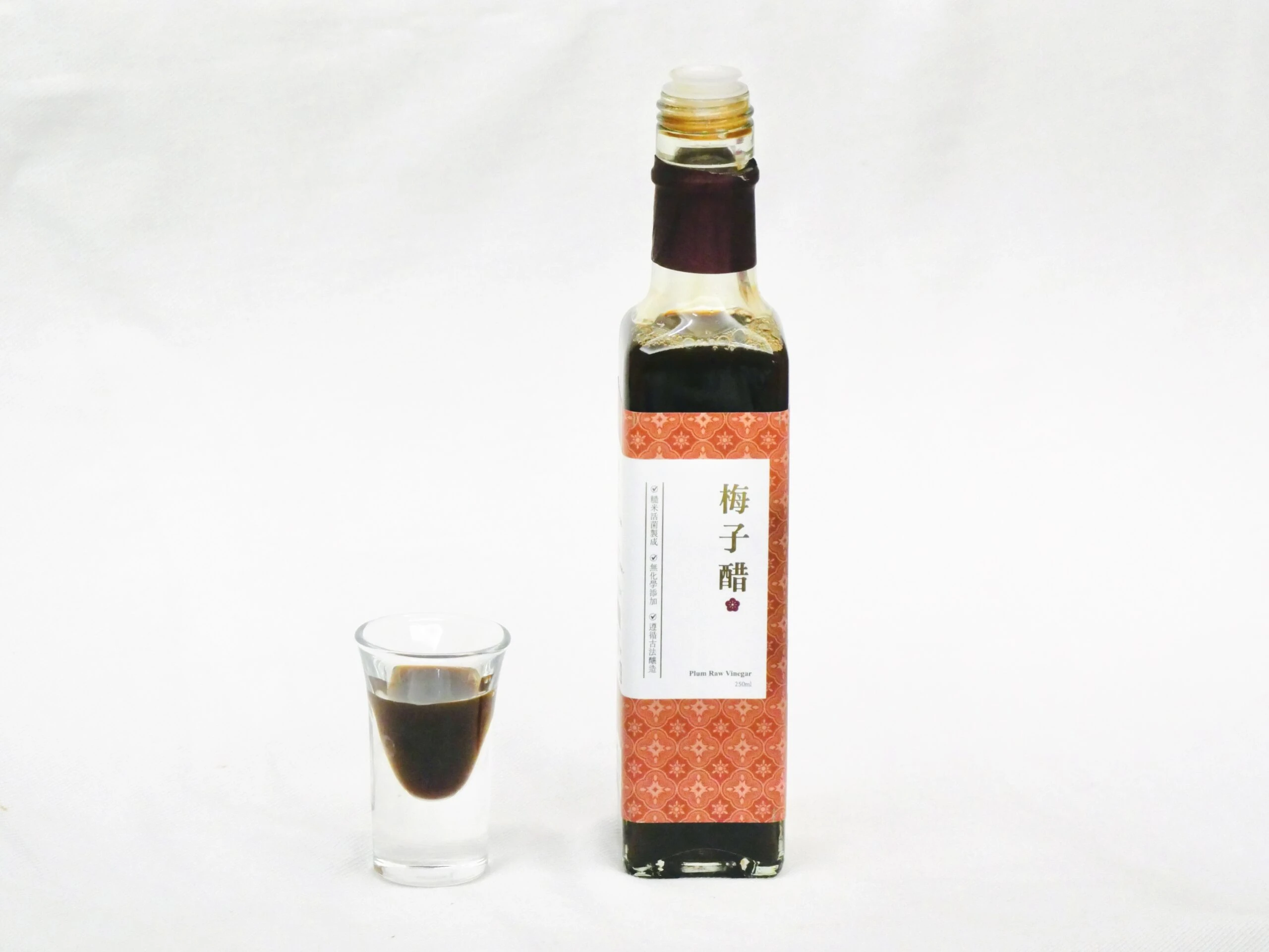 緣起南投水里梅鄉,延續傳統「依序漬釀、厚工慢做」。以活菌糙米醋為基底,加入新鮮梅子與黃冰糖,釀出溫潤不嗆、果香回甘的清爽滋味。