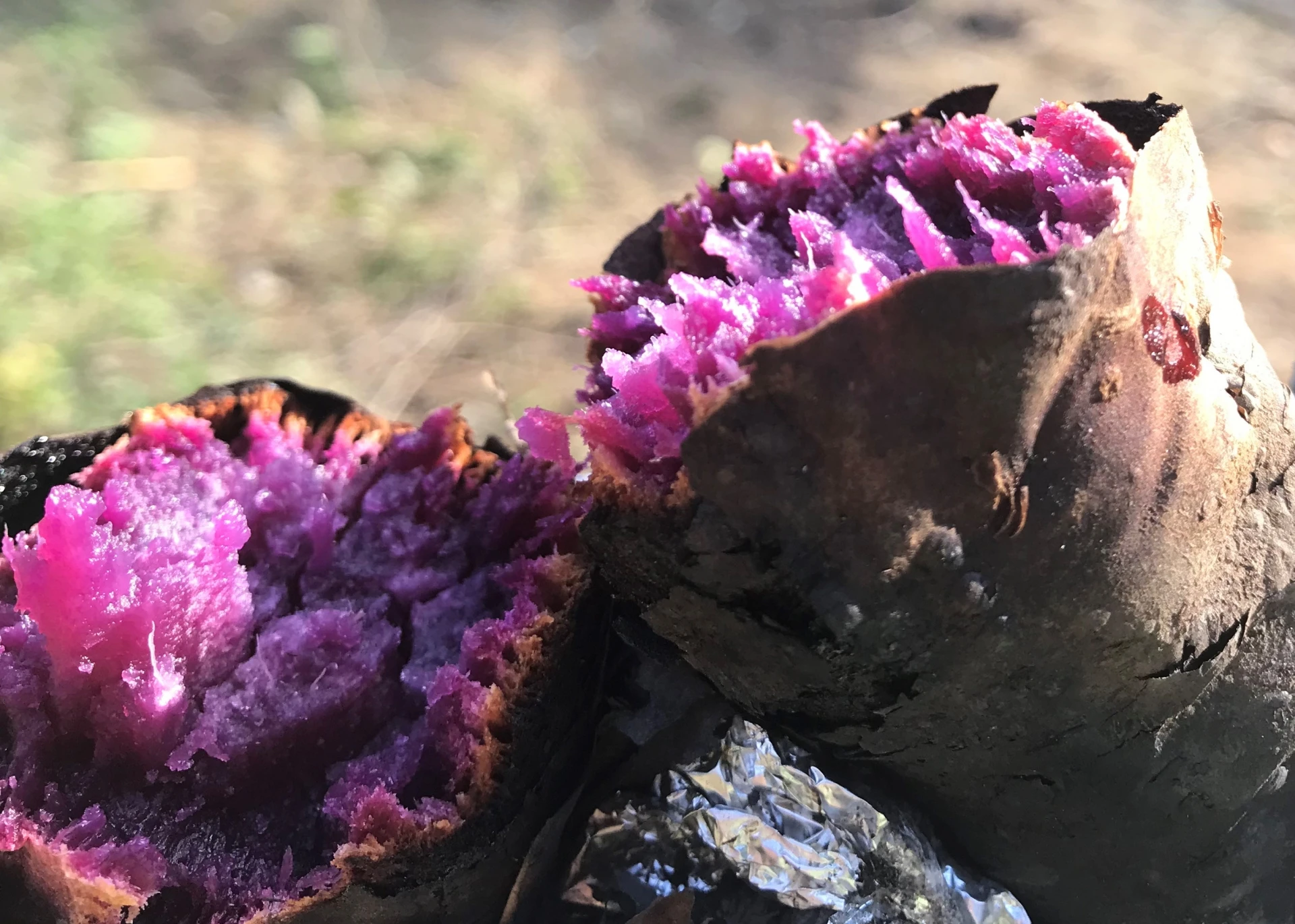 因為使用了一包裡同時有 台農57號黃地瓜 與 台農73號紫心地瓜 兩種品種。這不只是顏色不同,通常也會帶來風味和口感上的差異,讓吃起來不會太單調。