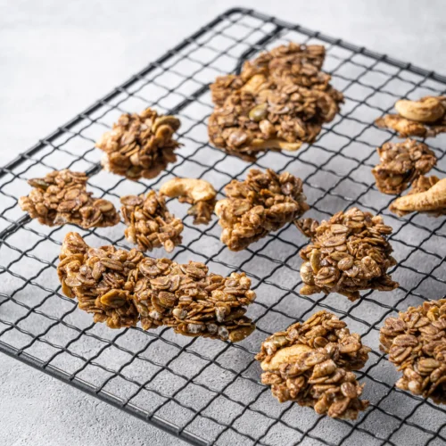 這款燕麥脆片不是碎細的類型,而是呈現紮實的大塊狀。這種形式更能鎖住抹茶與豆香的結合,讓你每一口都能咬到完整的全黃豆與燕麥塊。大塊酥脆的口感,不僅提升了咀嚼的樂趣,也讓味道更有主體感。