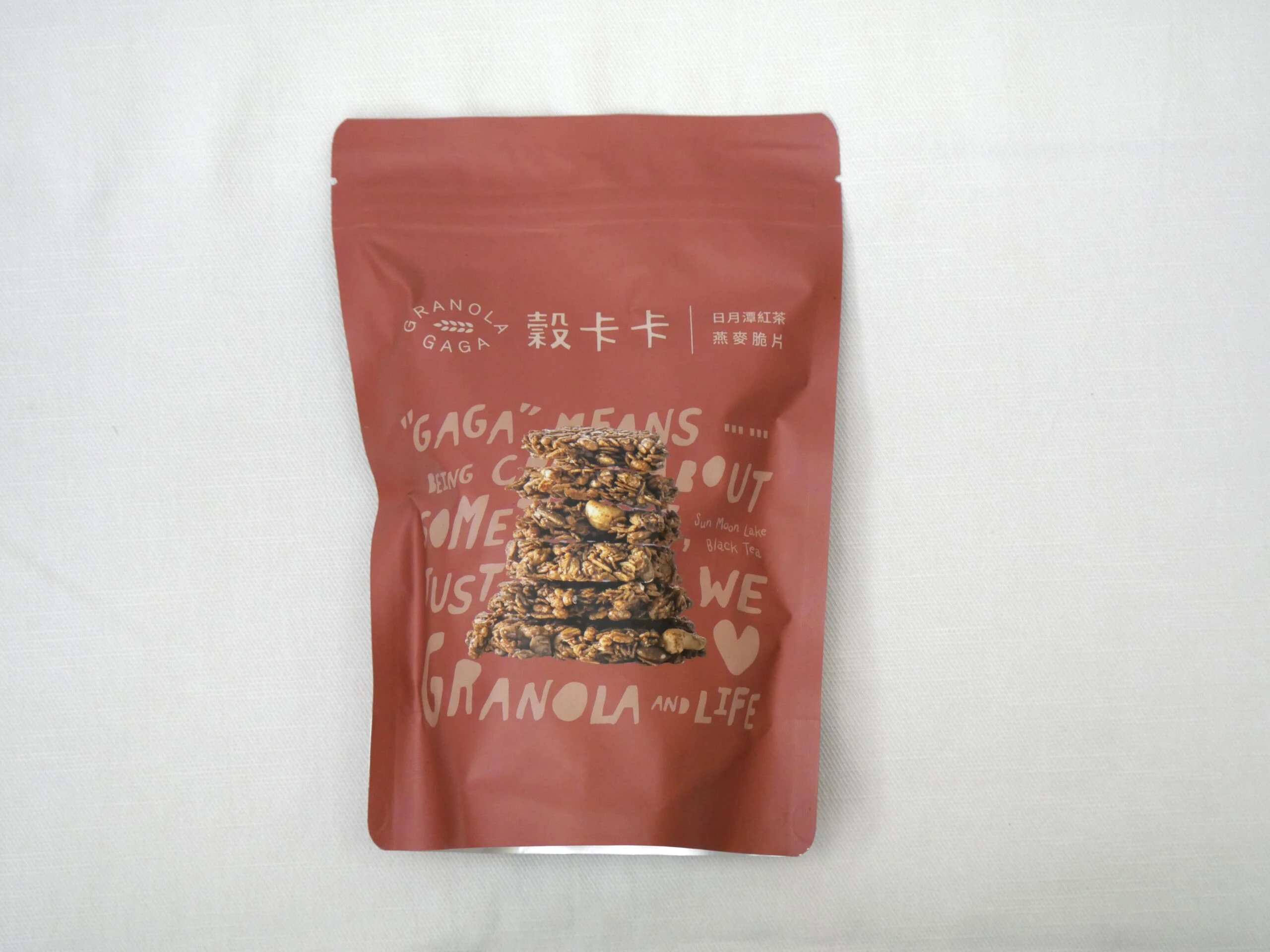 將台灣南投日月潭紅玉紅茶(台茶18號)揉入酥脆燕麥中。入口先感淡雅茶香,隨咀嚼後茶韻漸濃,搭配腰果、南瓜籽與清脆米香,提供層次鮮明且不甜膩的乾淨口感。